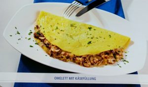 Hier seht ihr im Vergleich ein Omelett mit Champignons und Käsefüllung